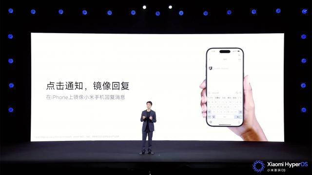 此外,澎湃 OS 3 还做到了通过小米互联服务同步两台手机的通知。当 iOS 端收到了来自小米手机的通知之后,直接点击就可以快速呼起小米手机的镜像,做到「在 iPhone 16 Pro 上使用小米 15 Pro 的微信回复消息」的操作——