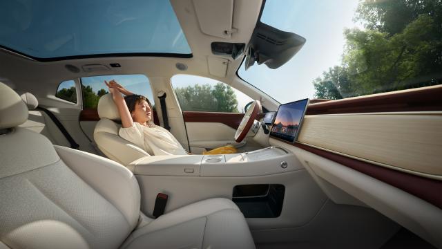 新车整车内饰材质均采用了 OEKO-TEX 认证的亲肤面料,软包面积达到 16.4 平方米,仪表台等部位采用天然木纹和金属拉丝面板装饰来营造豪华感,并在 100 多处关键部位填充声学包,采用四门 6mm 双层隔音玻璃搭配米其林静音轮胎来有效隔绝风噪和胎噪。
