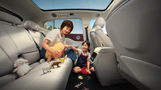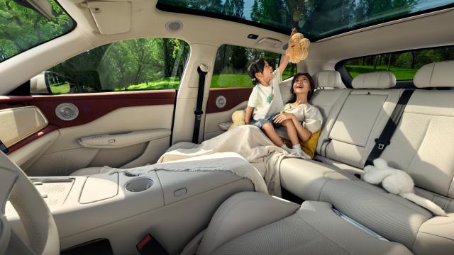 此外,新车共提供了 35 处储物空间,后备箱常规容积为 580L,并额外提供了 72L 隐私储物格,在放置 2 个 28 寸行李箱和 1 个 20 寸登机箱后,仍有剩余空间可容纳儿童安全座椅、折叠婴儿车等家庭出行必备物品,后排座椅全放倒后整车最大容积可以拓展到 1600L。